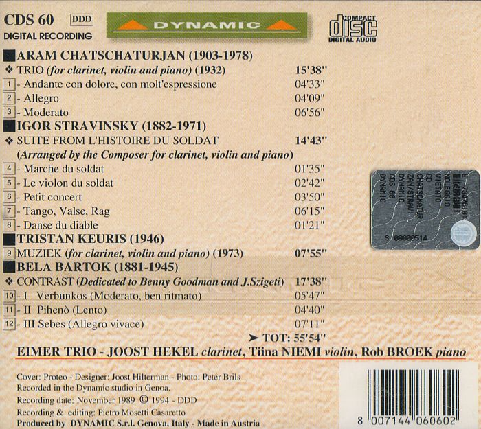 Artists | KHACHATURIAN [composer], STRAVINSKY [composer], BARTOK [composer], EIMER TRIO [ensemble] |