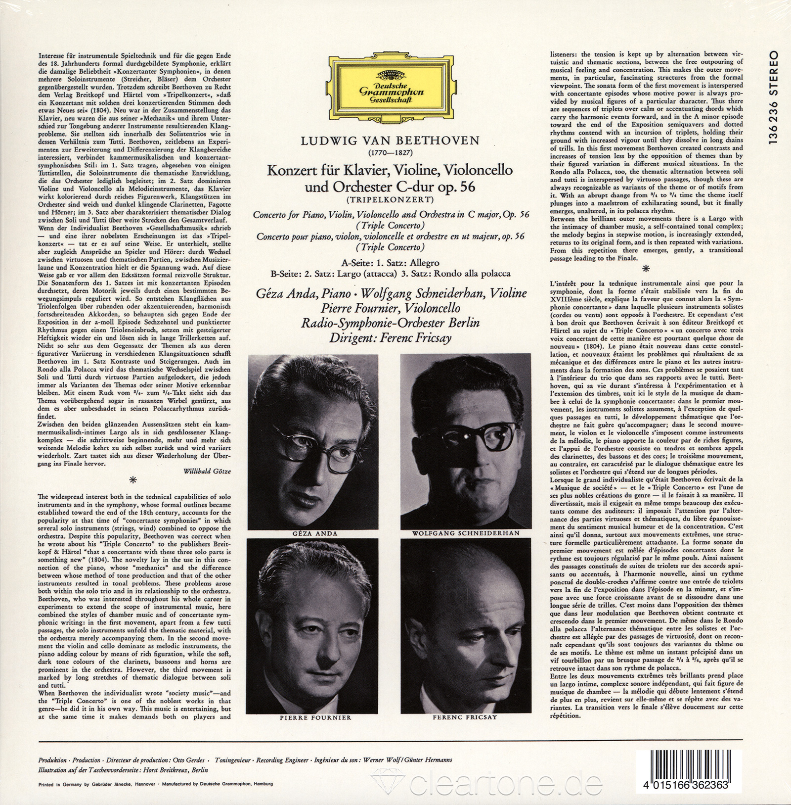 BEETHOVEN TRIPELKONZERT Geza Anda Wolfgang Schneiderhan Pierre Founier Ferenc Fricsay