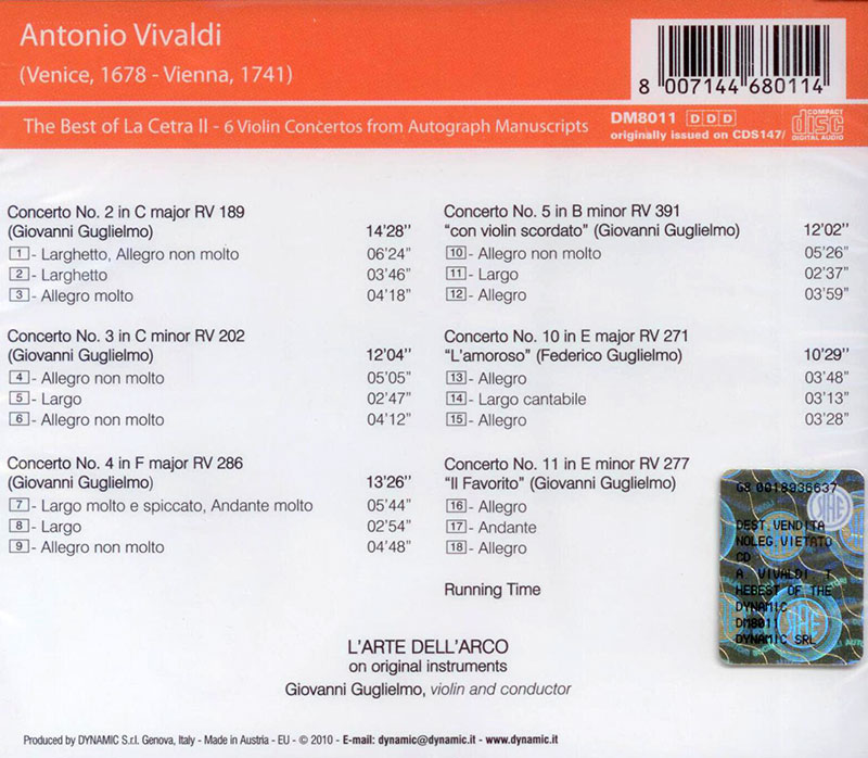VIVALDI [composer], GIOVANNI GUGLIELMO [conductor], L'ARTE DELL'ARCO [orchestra]
