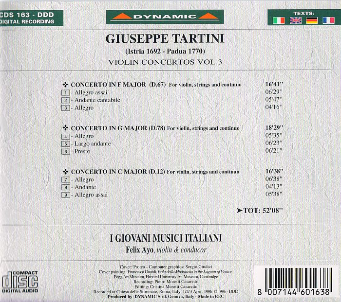 TARTINI [composer], FELIX AYO [violin], I GIOVANI MUSICI ITALIANI [orchestra]