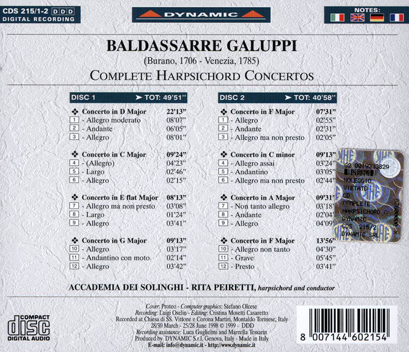 GALUPPI [composer], ACCADEMIA DEI SOLINGHI [orchestra], RITA PEIRETTI [conductor]