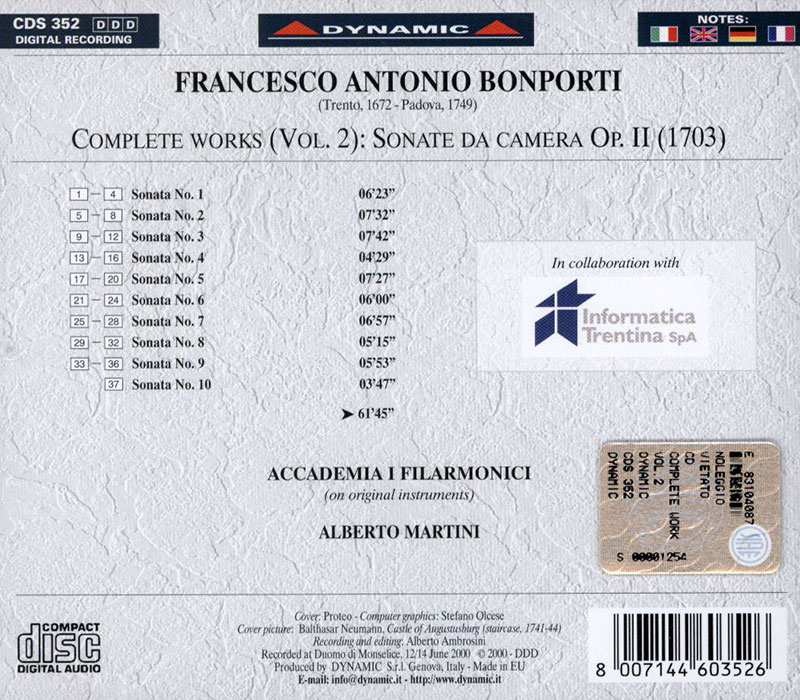 BONPORTI [composer], ACCADEMIA I FILARMONICI [orchestra], ALBERO MARTINI [conductor]