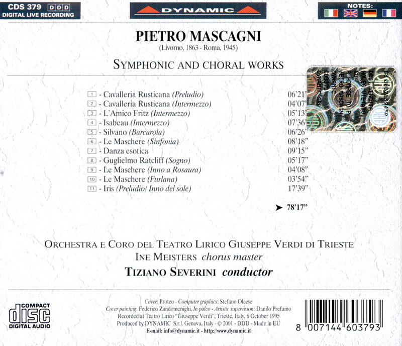 MASCAGNI [composer], ORCHESTRA OF THE LYRIC THEATRE GIUSEPPE VERDI OF TRIESTE [orchestra], TIZIANO SEVERINI [conductor]