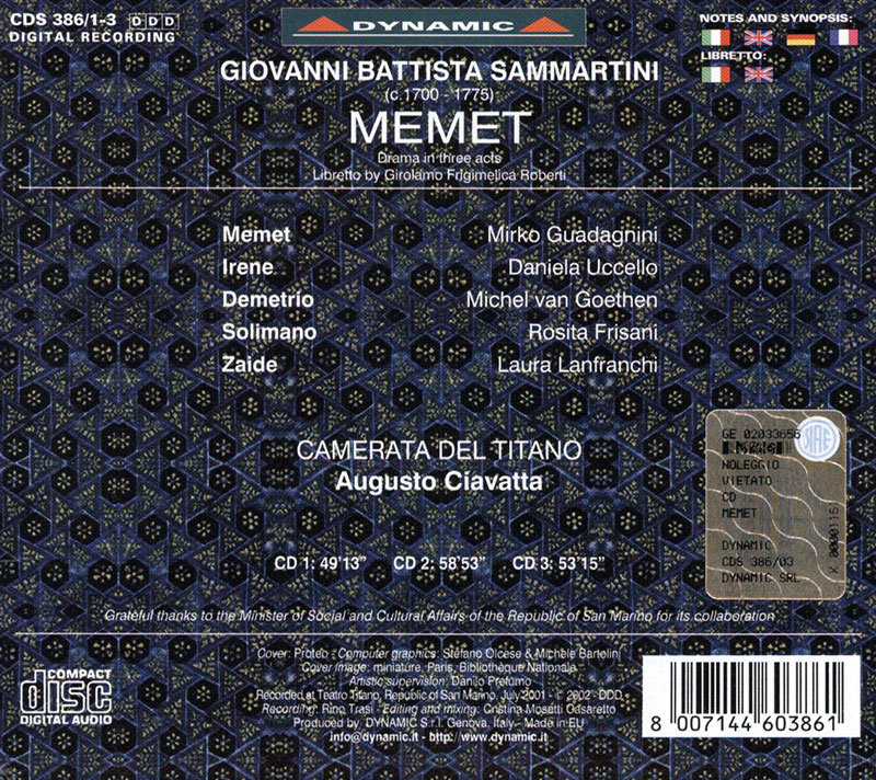 • 3. Memet: Act II Scene 2: Ah Irene! Ah Irene! (Demetrio, Irene) – Scene 3: Impaziente e il gran signor ? (Solimano, Irene, Memet) Rosita Frisani 3:23
