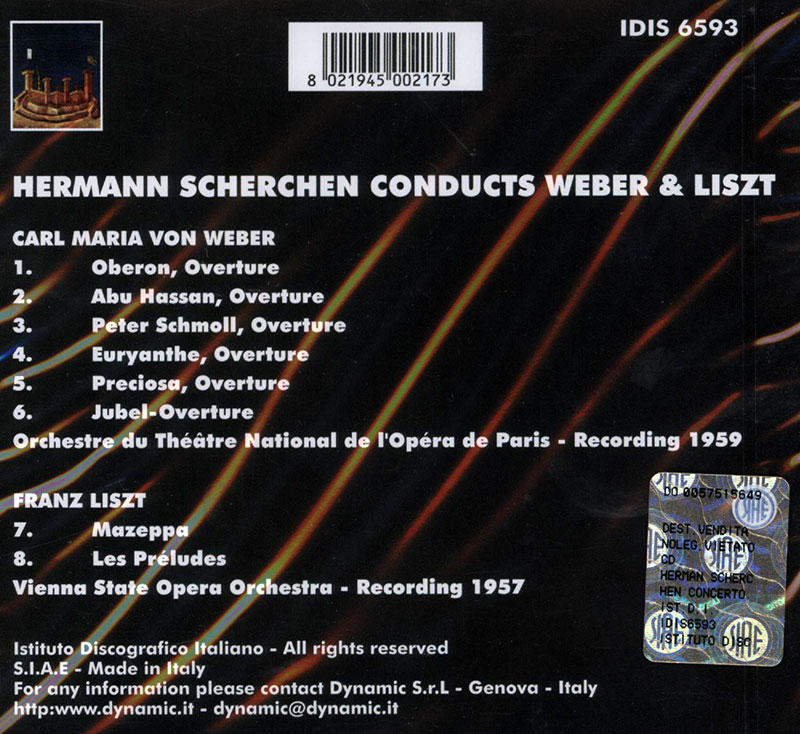 WEBER [composer], LISZT [composer], ORCHESTRE DU THEATRE NATIONAL DE L'OPERA DE PARIS [orchestra], HERMANN SCHERCHEN [conductor]