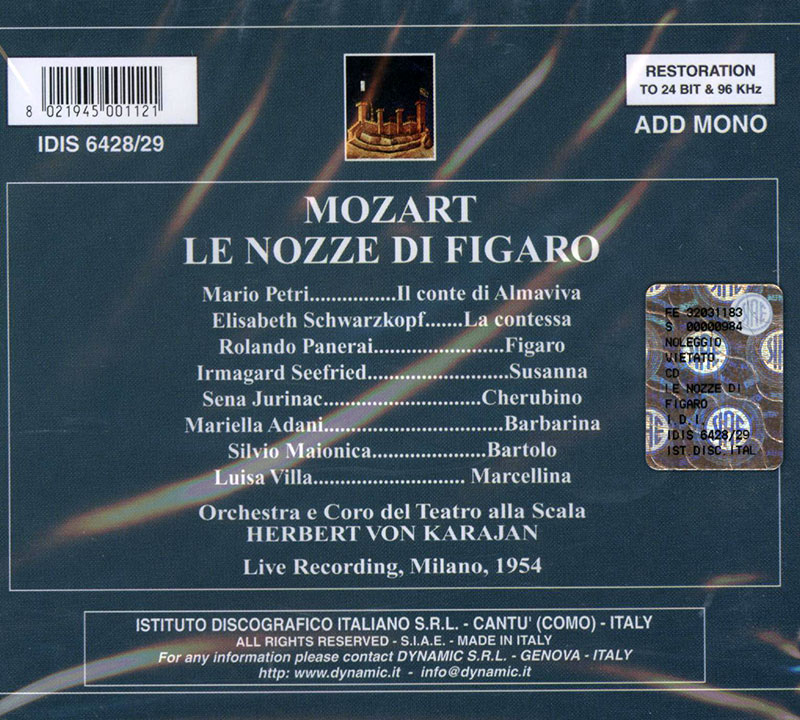 MOZART [composer], ELISABETH SCHWARZKOPF [soprano], SENA JURINAC [soprano], ORCHESTRA E CORO DEL TEATRO ALLA SCALA DI MILANO [orchestra], HERBERT VON KARAJAN [conductor]