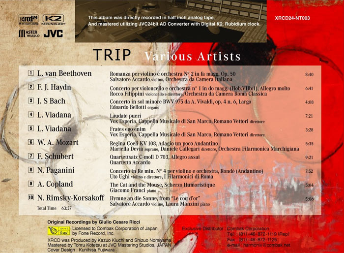 {{soundFile=http://www.ccd.pl/sample/XRCD24NT003/01.mp3,http://www.ccd.pl/sample/XRCD24NT003/02.mp3,http://www.ccd.pl/sample/XRCD24NT003/03.mp3,http://www.ccd.pl/sample/XRCD24NT003/04.mp3,http://www.ccd.pl/sample/XRCD24NT003/05.mp3,http://www.ccd.pl/sample/XRCD24NT003/06.mp3,http://www.ccd.pl/sample/XRCD24NT003/07.mp3&titles=1. Beethoven – Romanza per violino e orchestra,2. Haydn – Concerto per violoncello e orchestra,3. Bach – Concerto in sol minore BWV 975 da A.Vivaldi,4. Viadana – Laudate pueri,5. Viadana – Frates ego enim,6. Mozart – Regina Coeli KV 108,7. Schubert – Quartettsatz C-moll D 703}}