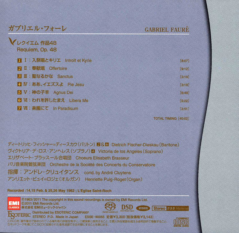 {{soundFile=http://www.ccd.pl/sample/ESSE90055/01.mp3,http://www.ccd.pl/sample/ESSE90055/02.mp3,http://www.ccd.pl/sample/ESSE90055/03.mp3,http://www.ccd.pl/sample/ESSE90055/06.mp3&titles=01. Introit and Kyrie (8:07),02. Offertoire (9:12),03. Sanctus (3:19),06. Libera me (5:22)}}