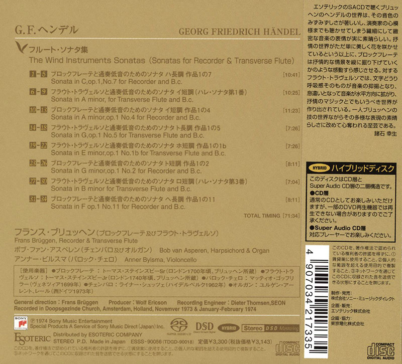 {{soundFile=http://www.ccd.pl/sample/ESSS90056/01.mp3,http://www.ccd.pl/sample/ESSS90056/06.mp3,http://www.ccd.pl/sample/ESSS90056/10.mp3,http://www.ccd.pl/sample/ESSS90056/14.mp3&titles=1-5. Sonata in C op.1 No.7 for Recorder and B.c. ,6-9. Sonata in A minor for Transverse Flute and B.c. ,10-13. Sonata in A minor op.1 No.4 for Recorder and B.c. ,14-18. Sonata in G op.1 No.5 for Transverse Flute and B.c.}}